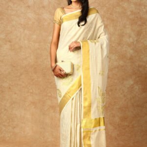 Women Kerala Cream Gold Jari Tissue Saree KS151