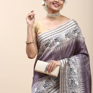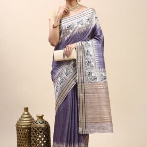 Women Semi Tussar Saree Purple ST187