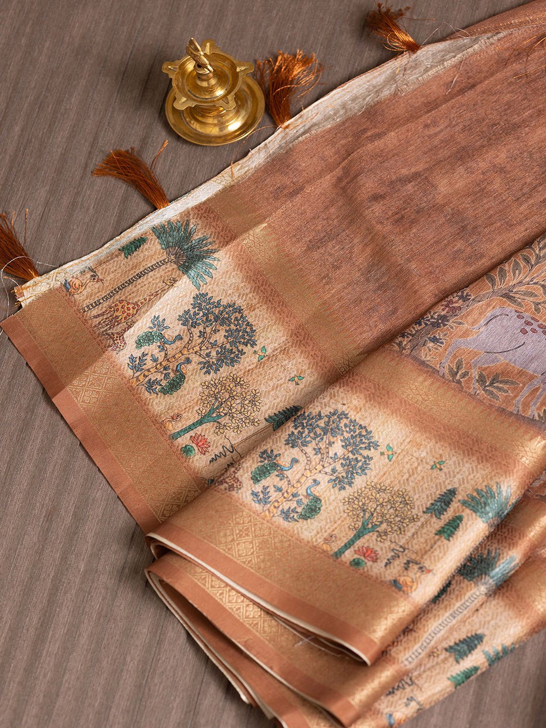 Women Copper Semi Tussar Printed Saree SS340