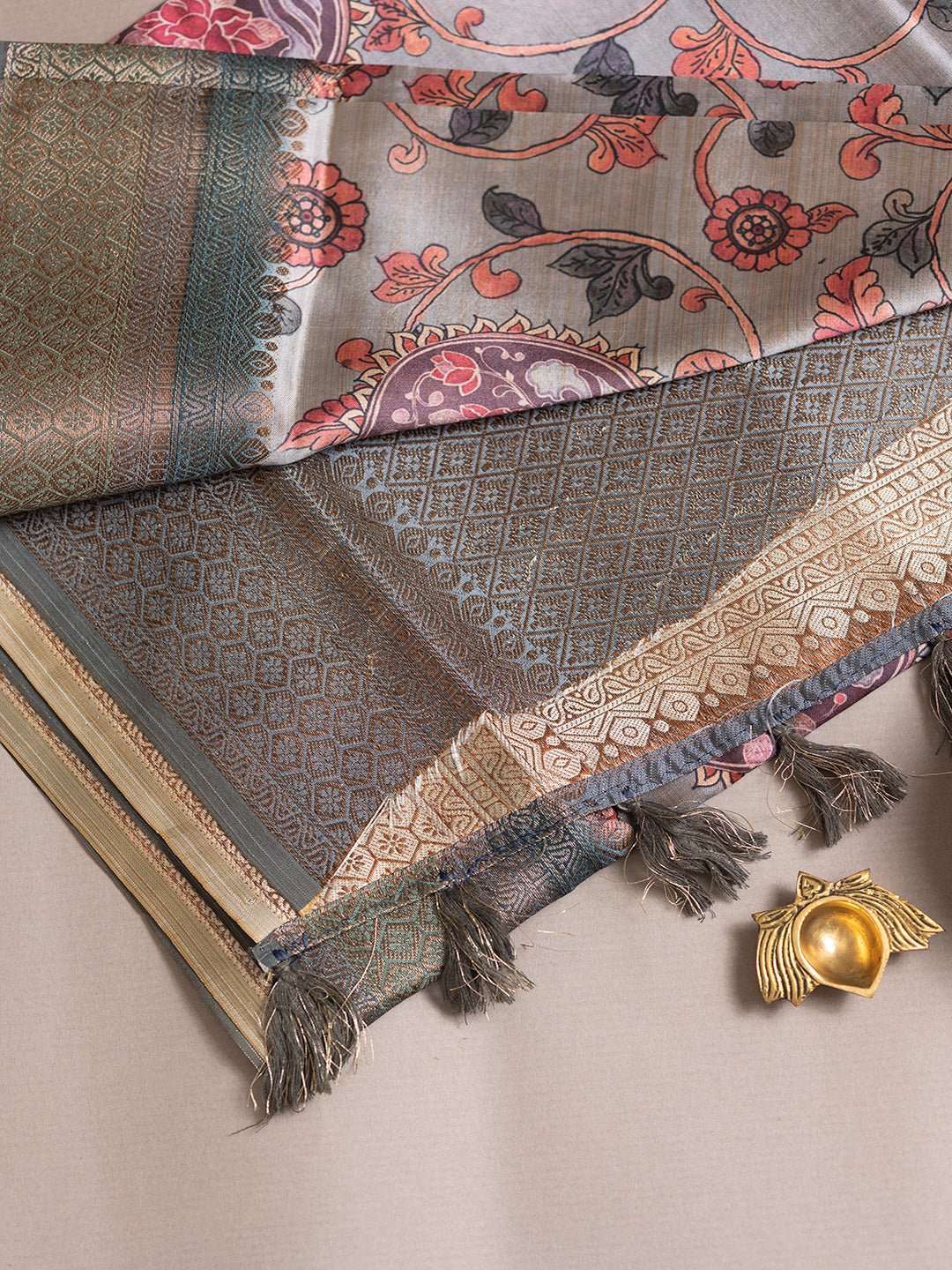 Women Grey Semi Tussar Printed Saree ASS22