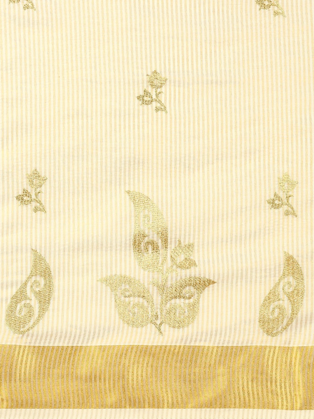 Women Kerala Cream Striped Saree KS156