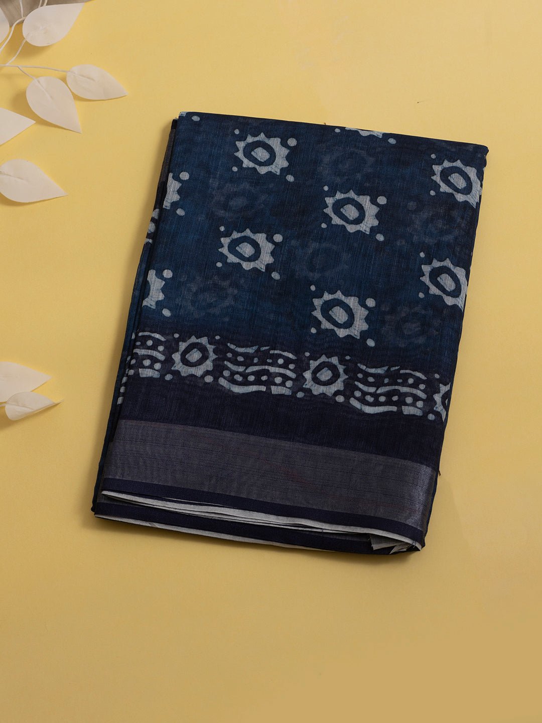 Women Navy Semi Linen Printed Saree SL179