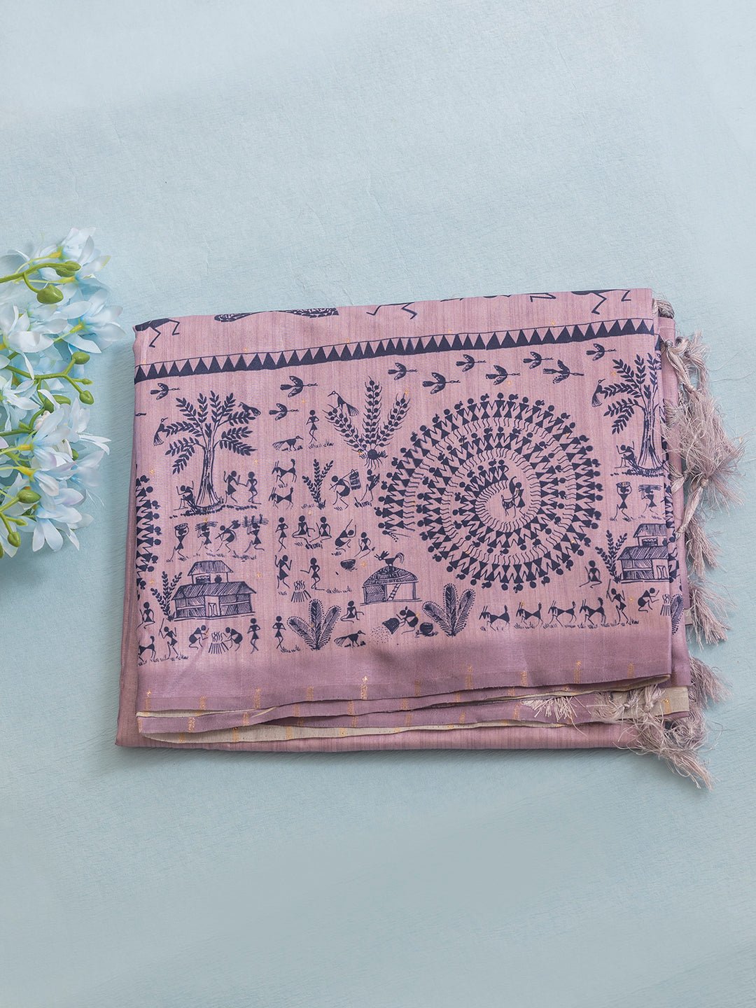 Women Pink Semi Tussar Printed Saree SCS157