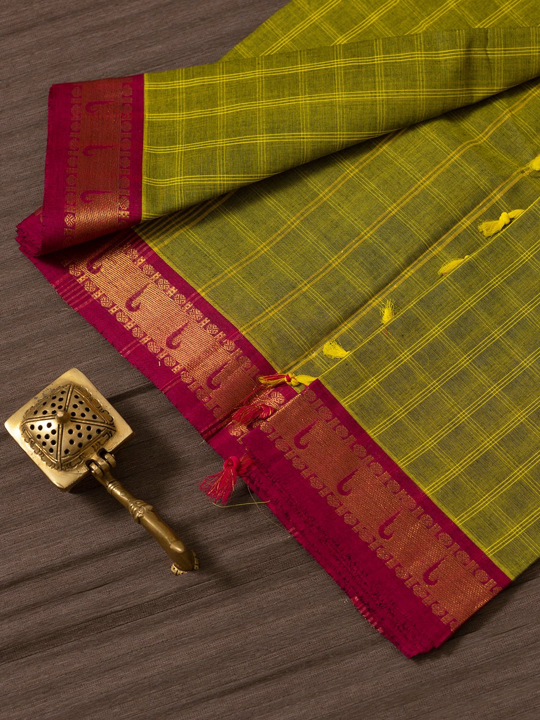 Experience the timeless elegance of tradition with this exquisite Chettinad Pure Cotton Checks Saree. Handwoven with premium quality cotton, this saree features a classic checked pattern that perfectly blends simplicity with style. Known for its breathable fabric and vibrant yet subtle hues, it promises unmatched comfort and durability—ideal for everyday wear or festive occasions. The saree’s intricate craftsmanship reflects the rich cultural heritage of Chettinad, making it a must-have addition to your ethnic wardrobe.