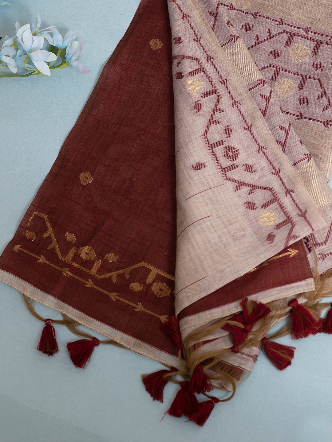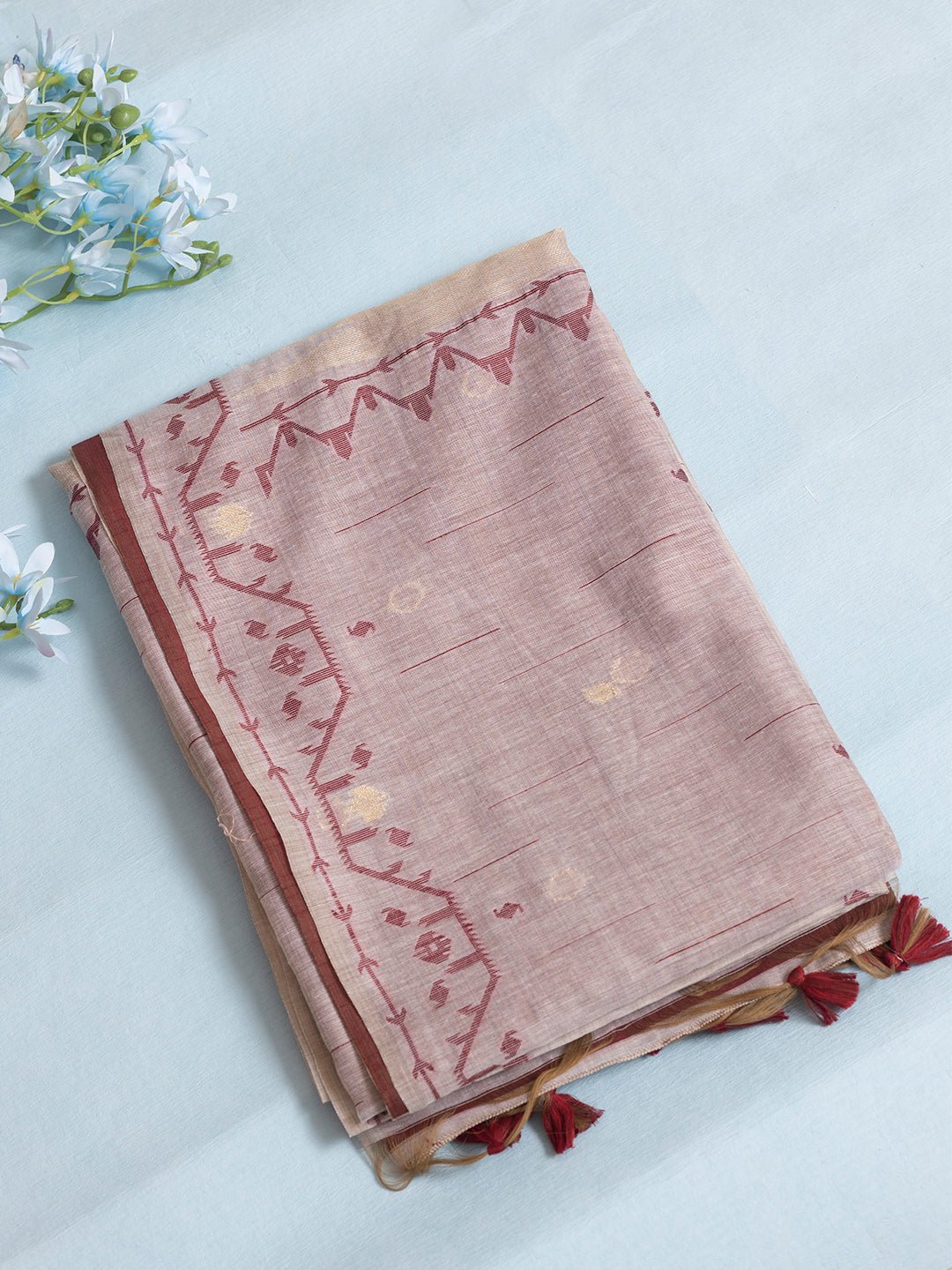 Women Sandal Embroidery Semi Cotton Saree SCS148