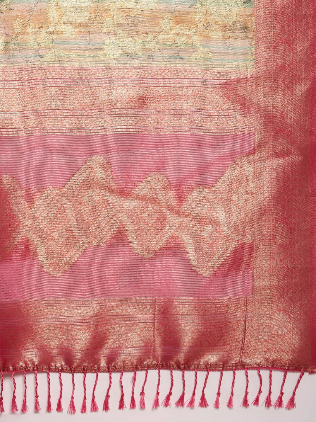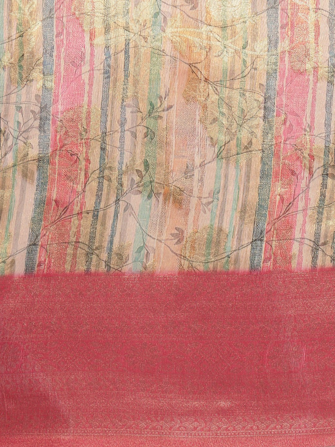 Women Semi Chanderi Cotton Printed Saree Gold SC37