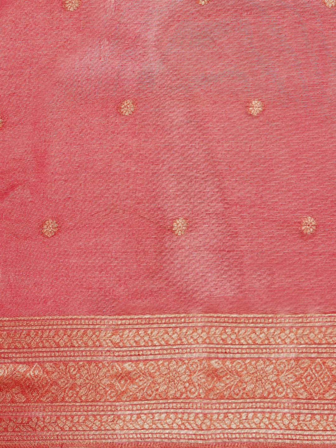 The Chanderi indicates that the saree is made up of a combination of partly Chanderi silk fabric and other materials, such as cotton or synthetic fabric. The well-executed uniqueness and sophisticated weaving techniques of a Chanderi saree are what make them appealing. The saree is made up of a combination of partly Chanderi silk fabric and other materials, such as cotton or synthetic fabric. Chanderi fabric is light-weight, has glossy transparency and has a sheer texture. Outfits woven from Chanderi fabric are best to be worn during hot weather.