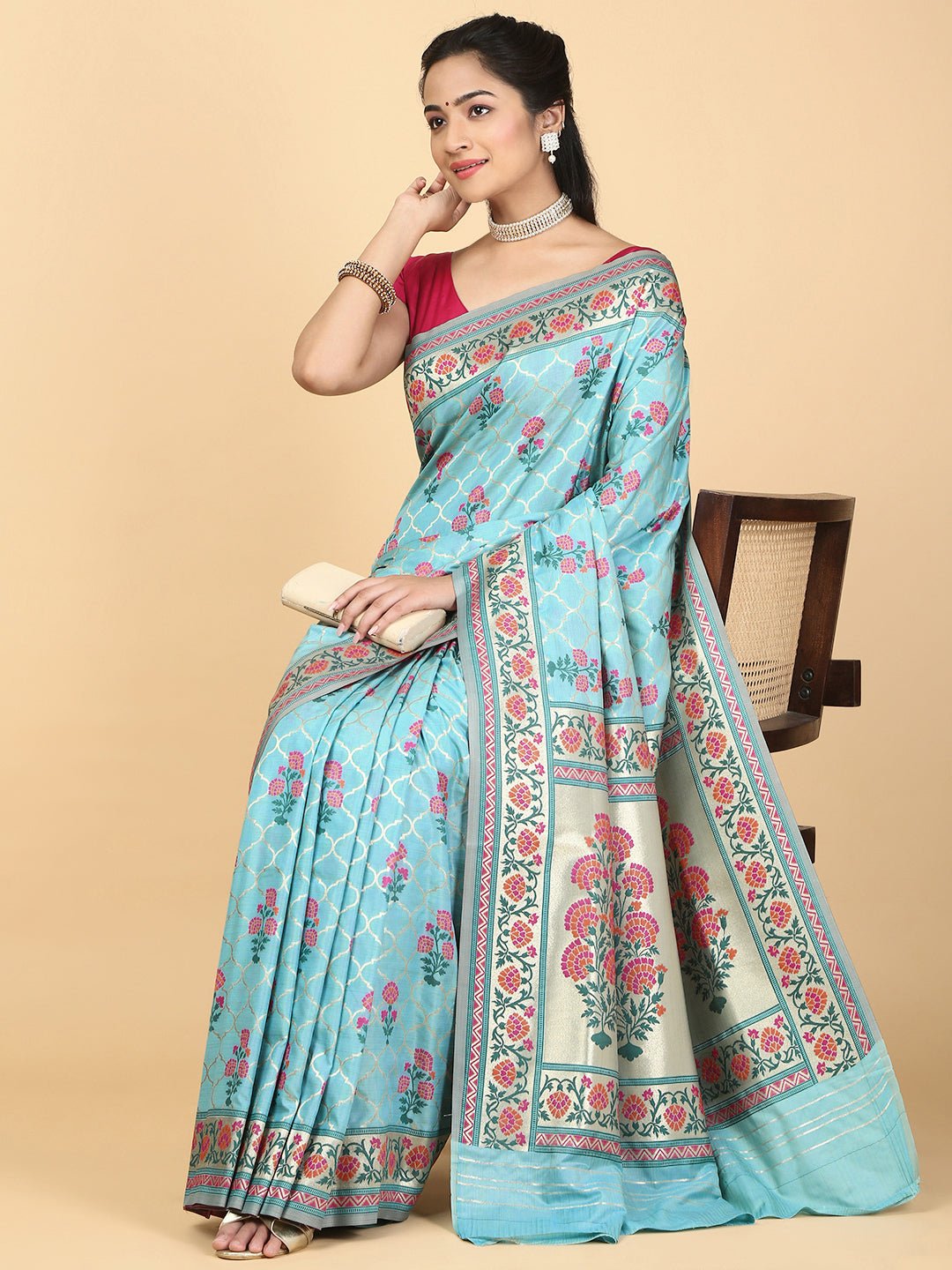 A semi-cotton saree is made from a blend of cotton fibers. The fabric has a mix of both natural and cotton materials, which makes it more durable, lightweight and easy to maintain than a pure cotton saree. Semi-cotton sarees are a popular choice for women who prefer the comfort and breathability of cotton but also want the elegance and shine of a synthetic saree, making it suitable for both casual and formal occasions.