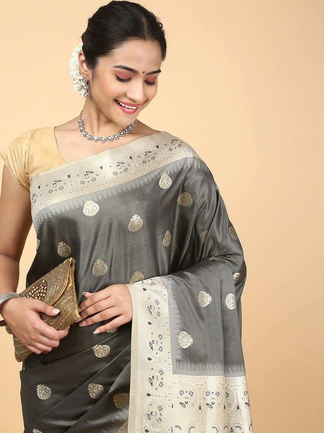 Women Semi Cotton Saree Dark Grey SCS138