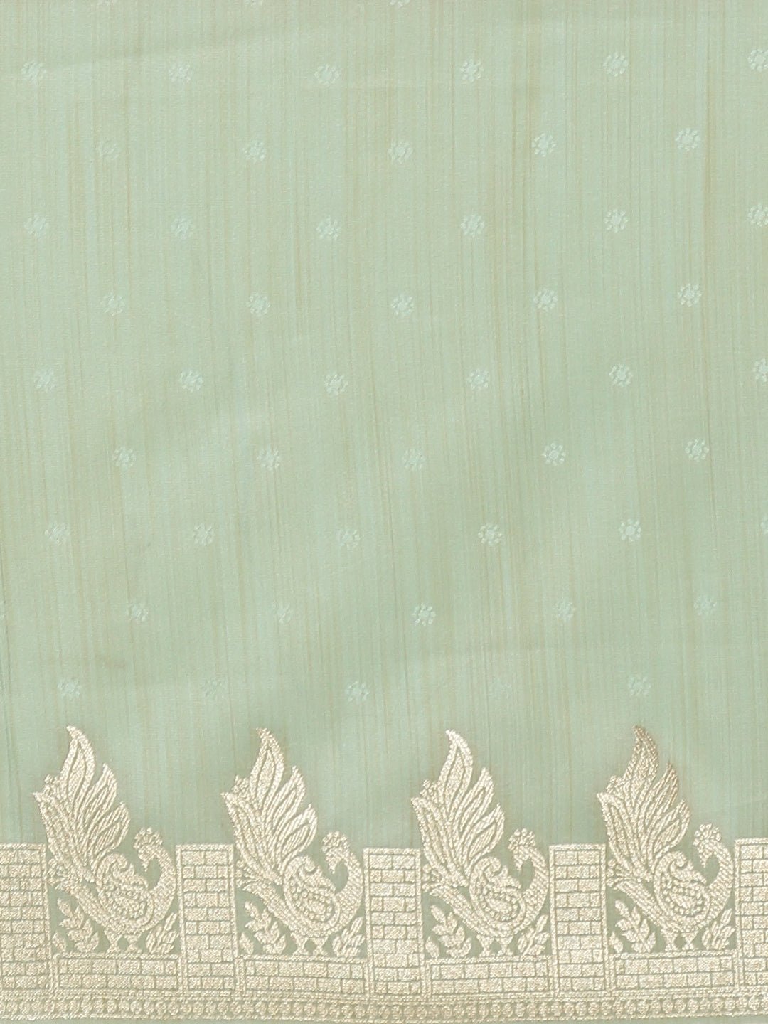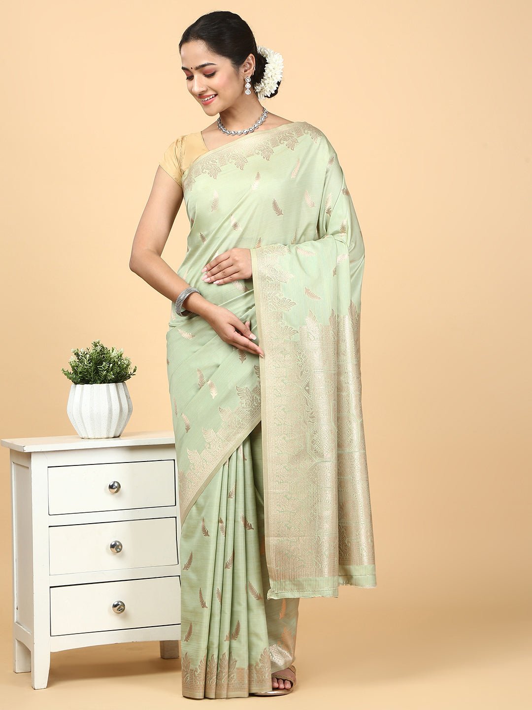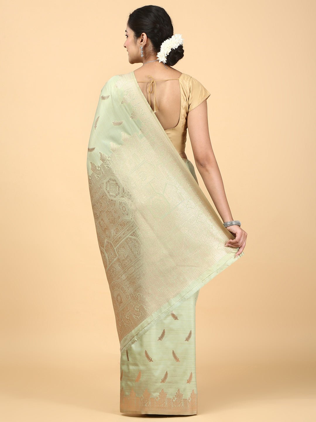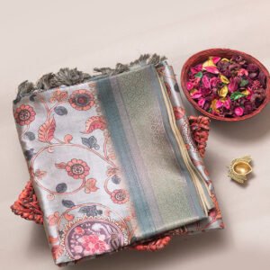 A semi-cotton saree is made from a blend of cotton fibers. The fabric has a mix of both natural and cotton materials, which makes it more durable, lightweight and easy to maintain than a pure cotton saree. Semi-cotton sarees are a popular choice for women who prefer the comfort and breathability of cotton but also want the elegance and shine of a synthetic saree, making it suitable for both casual and formal occasions.