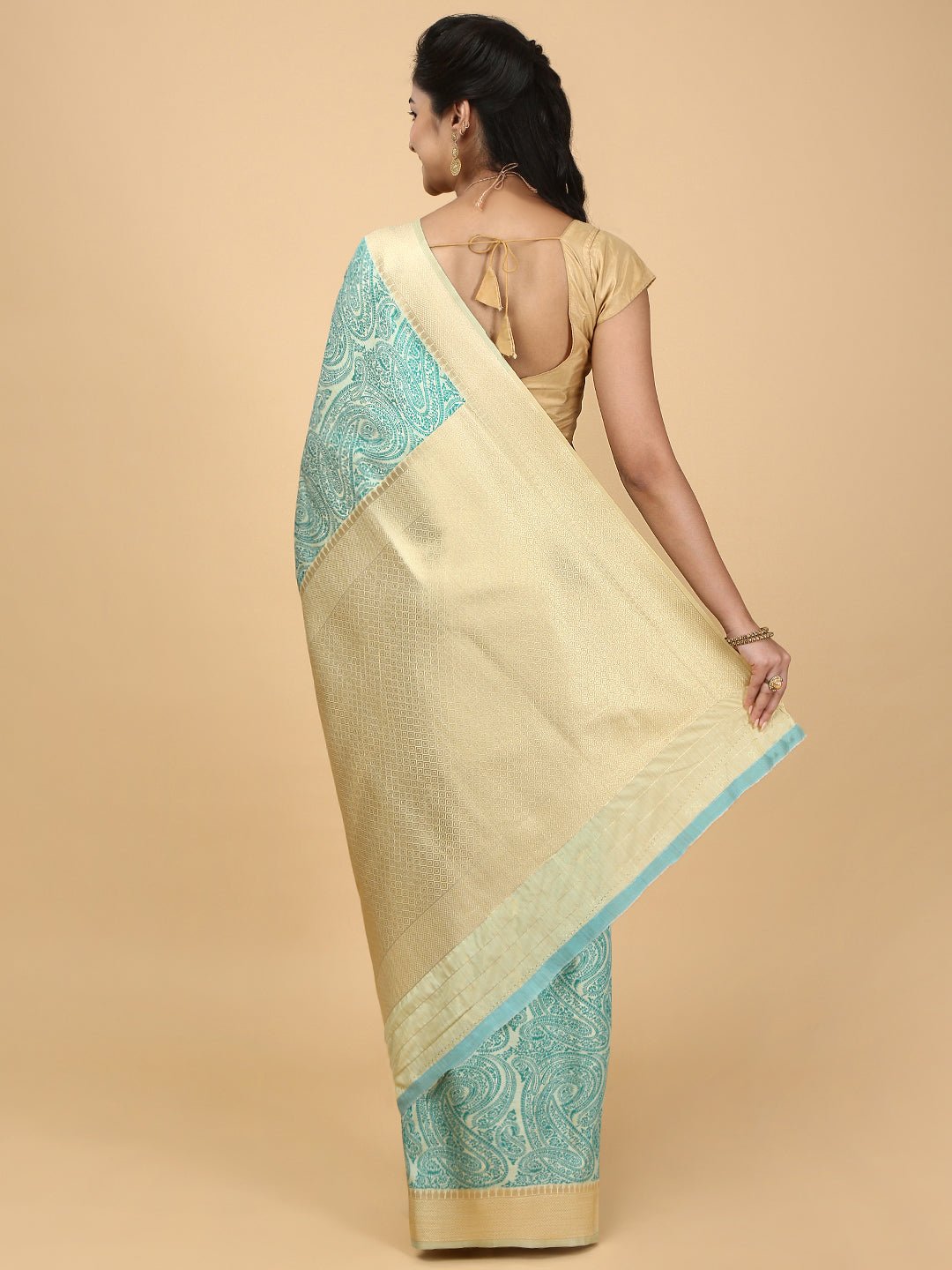 A semi-cotton saree is made from a blend of cotton fibers. The fabric has a mix of both natural and cotton materials, which makes it more durable, lightweight and easy to maintain than a pure cotton saree. Semi-cotton sarees are a popular choice for women who prefer the comfort and breathability of cotton but also want the elegance and shine of a synthetic saree, making it suitable for both casual and formal occasions.