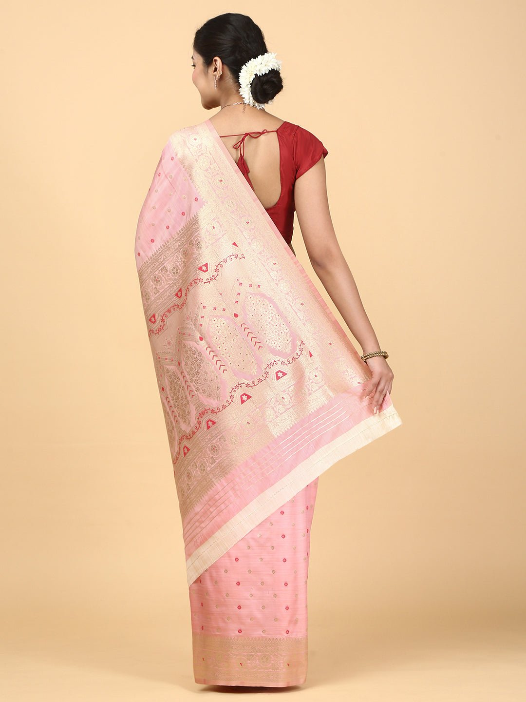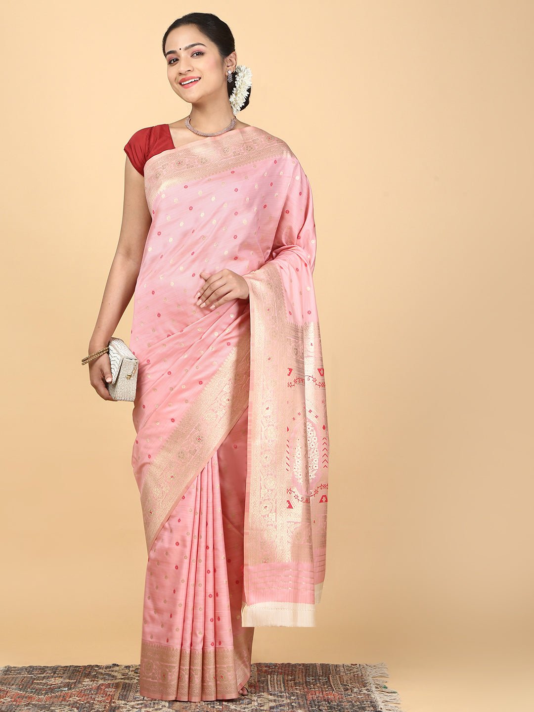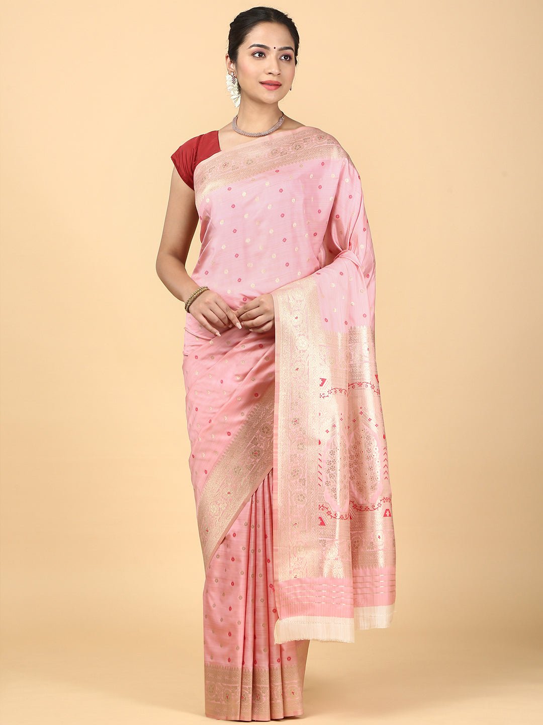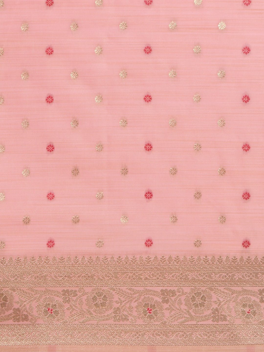 A semi-cotton saree is made from a blend of cotton fibers. The fabric has a mix of both natural and cotton materials, which makes it more durable, lightweight and easy to maintain than a pure cotton saree. Semi-cotton sarees are a popular choice for women who prefer the comfort and breathability of cotton but also want the elegance and shine of a synthetic saree, making it suitable for both casual and formal occasions.