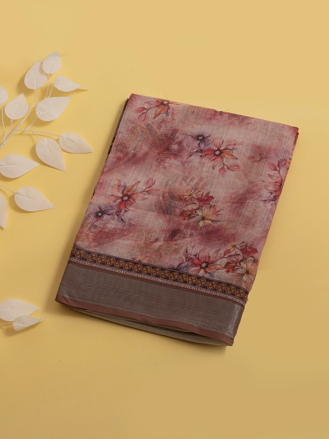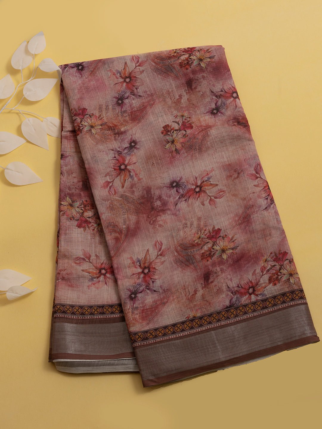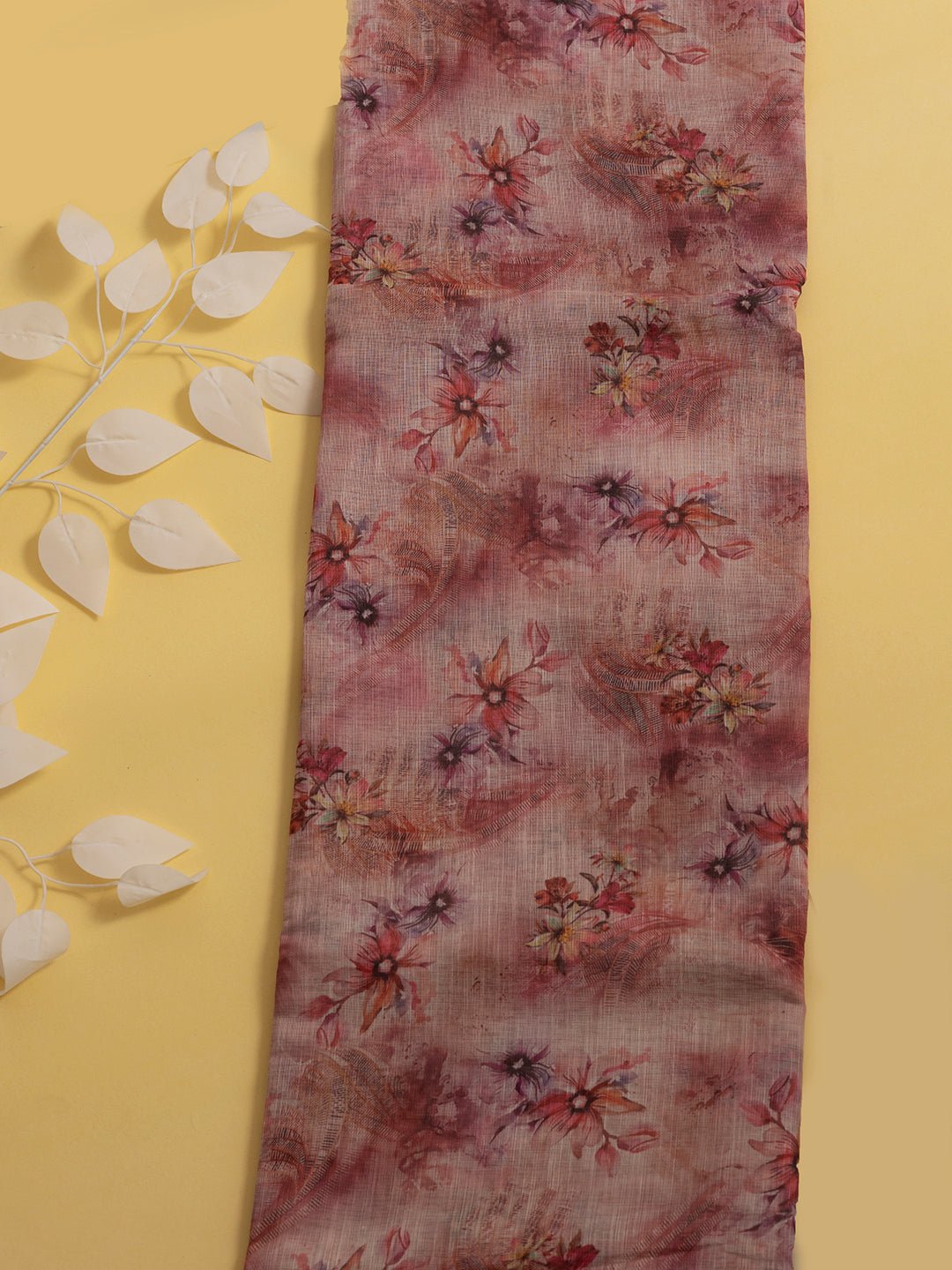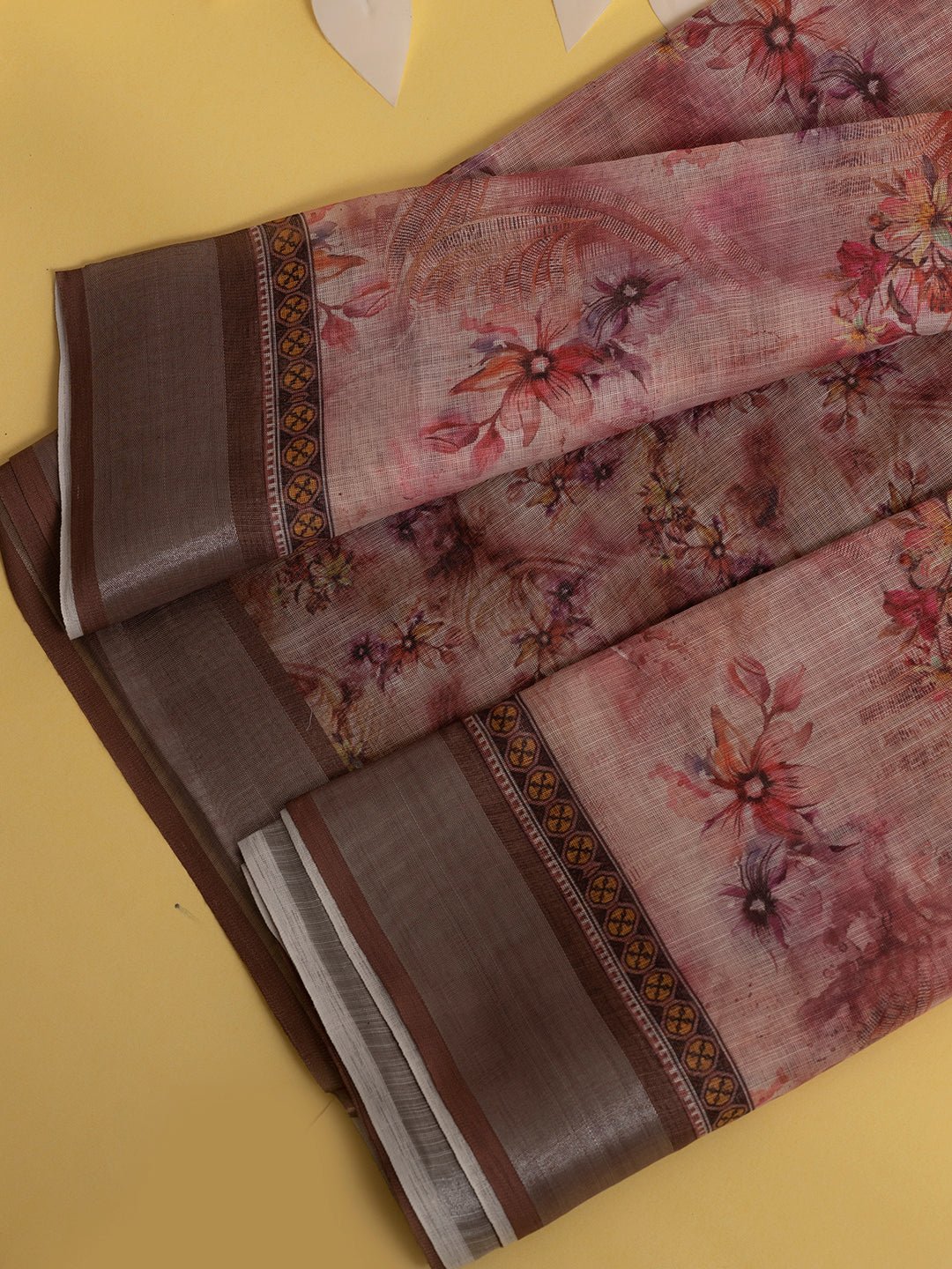 Women Semi Linen Digital Printed Saree Coral Pink SL185