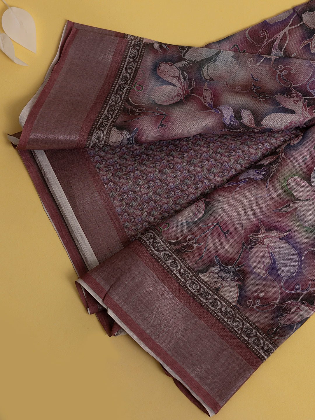 Elevate your ethnic wardrobe with this exquisite Semi-Linen Digital Printed Saree, a perfect fusion of tradition and contemporary charm. Crafted from soft, breathable semi-linen fabric, this saree offers a lightweight feel and a graceful drape, making it ideal for all-day wear.