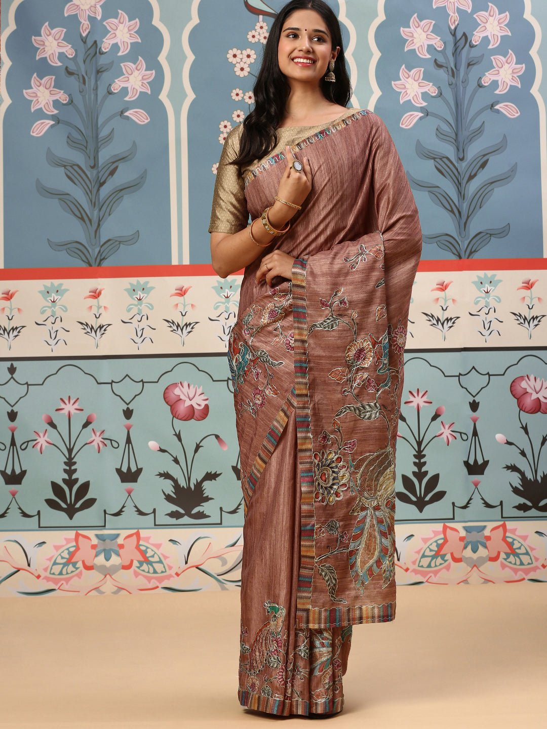 One of the most striking features of Semi Tussar sarees is their exquisite texture. The natural irregularities in the Tussar Silk yarns lend a unique charm to each piece, creating a rich visual appeal. This distinctive texture is often complemented by intricate weaving techniques which add depth and dimension to the fabric.