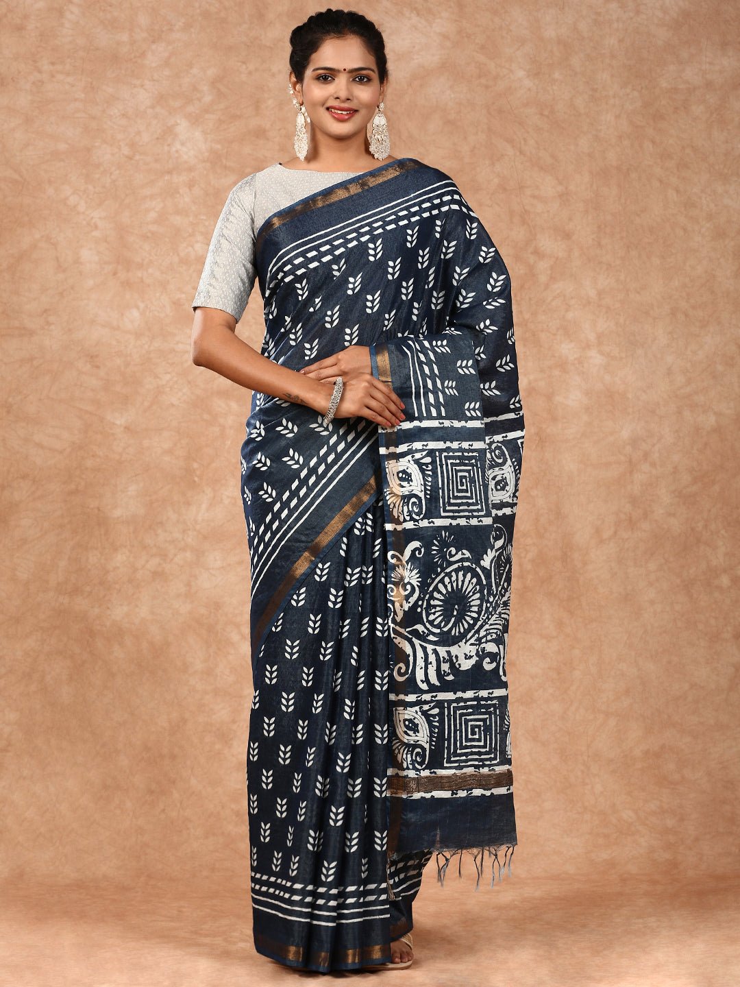 A Semi Tussar Printed saree is a type of Indian traditional garment made from a semi-tussar fabric that has been printed with a design. Semi Tussar Printed saree are lightweight, breathable, and easy to drape, making them ideal for all-day wear. They can be styled in a variety of ways, depending on the occasion and personal preference. They can be paired with a simple blouse for a casual look or with a heavily embellished blouse for a more formal event. Overall, a Semi Tussar Printed saree is a versatile and elegant garment that can add a touch of traditional charm to any wardrobe.