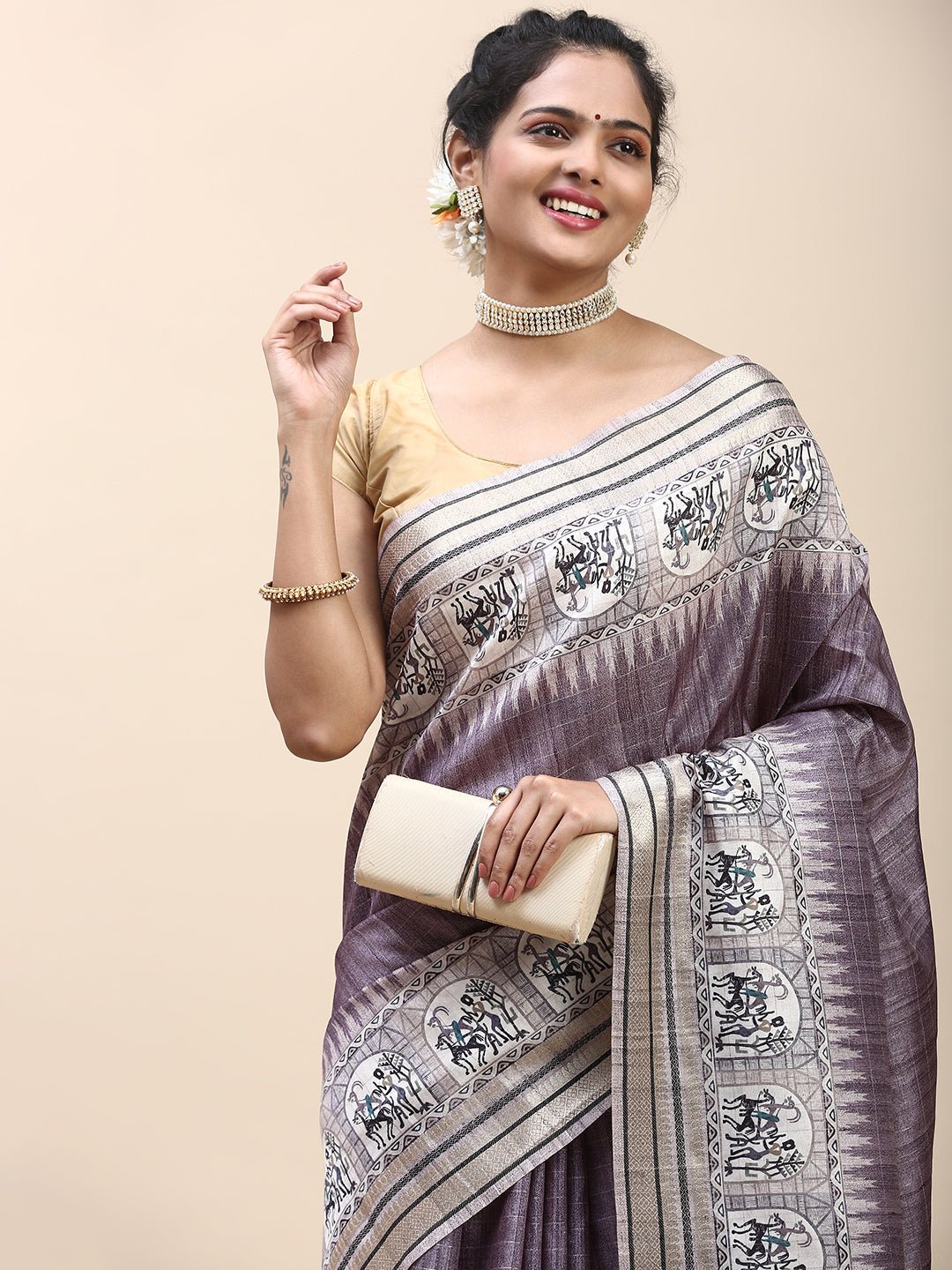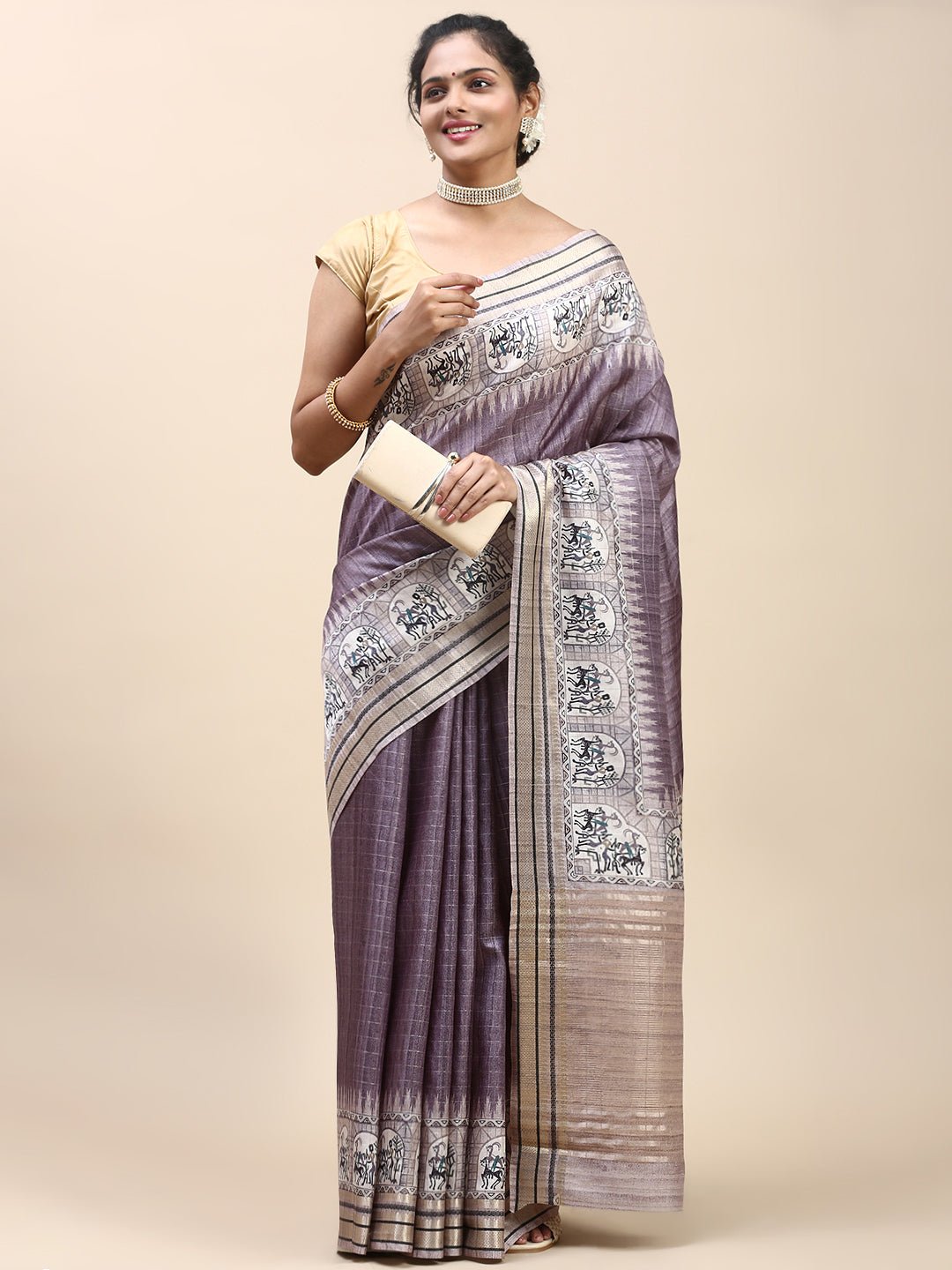 Women Semi Tussar Saree Purple ST196