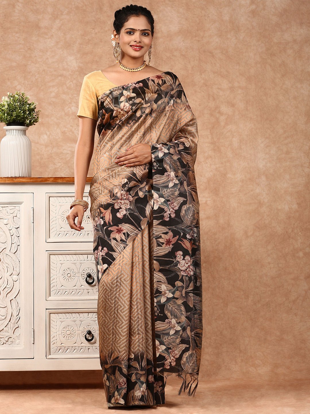 Women Semi Tussar Weaving Saree Brown  ST148