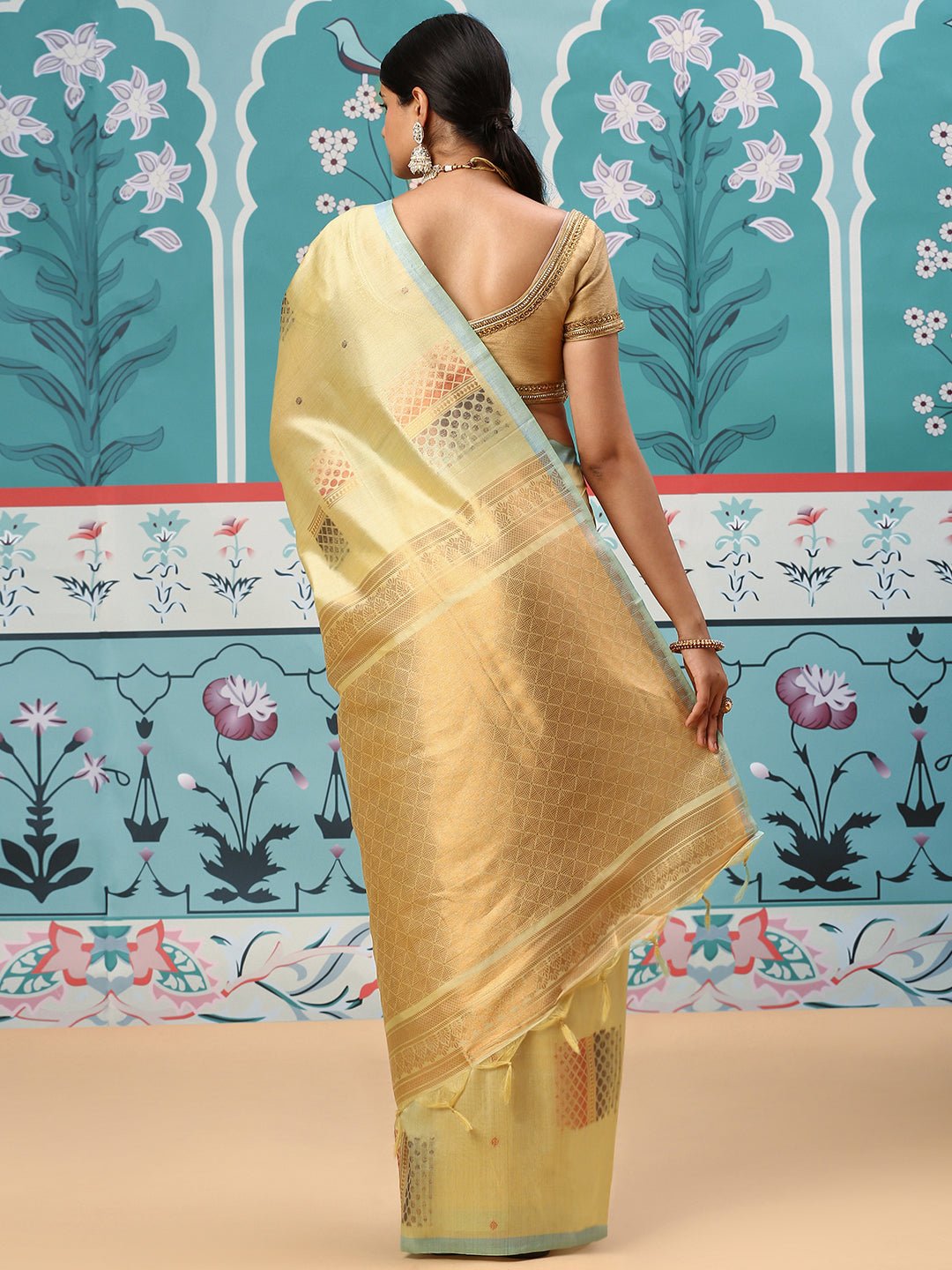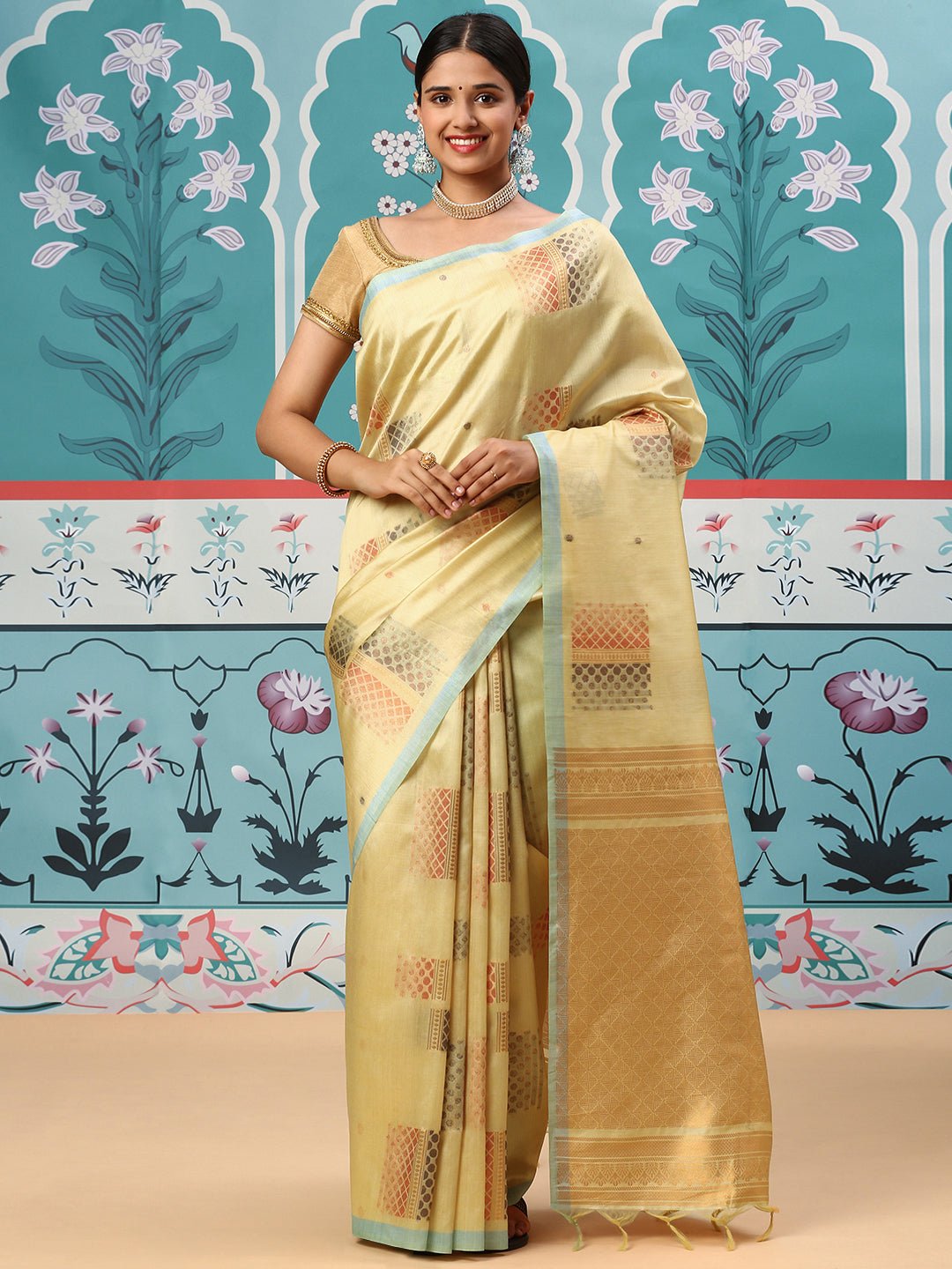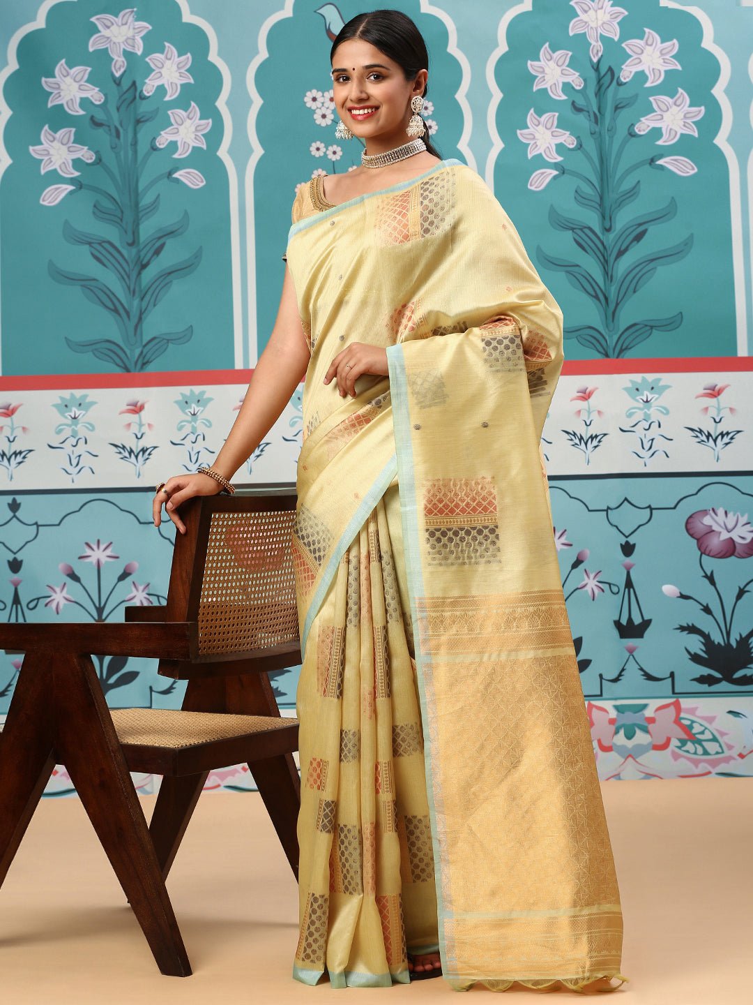 Semi Tussar Weaving sarees exude a timeless elegance that seamlessly blends tradition with modern sophistication. Crafted from a blend of these sarees bear the hallmark sheen and texture of Tussar silk while offering the comfort and durability of cotton. One of the most striking features of Semi Tussar sarees is their exquisite texture. The natural irregularities in the Tussar Silk yarns lend a unique charm to each piece, creating a rich visual appeal.