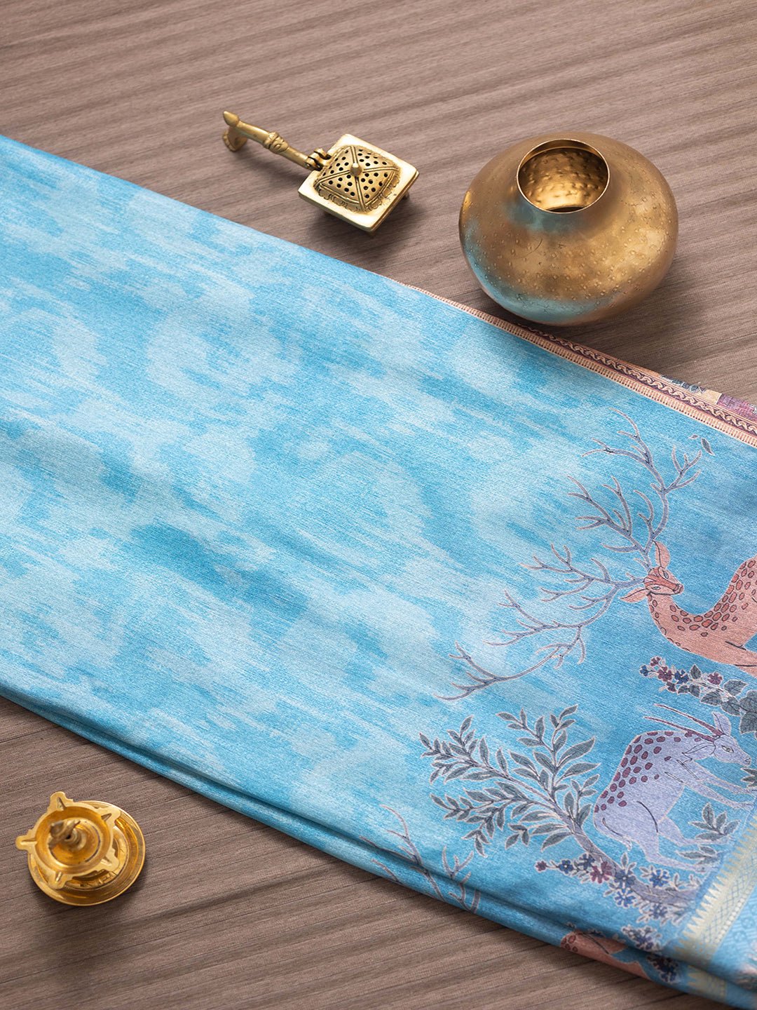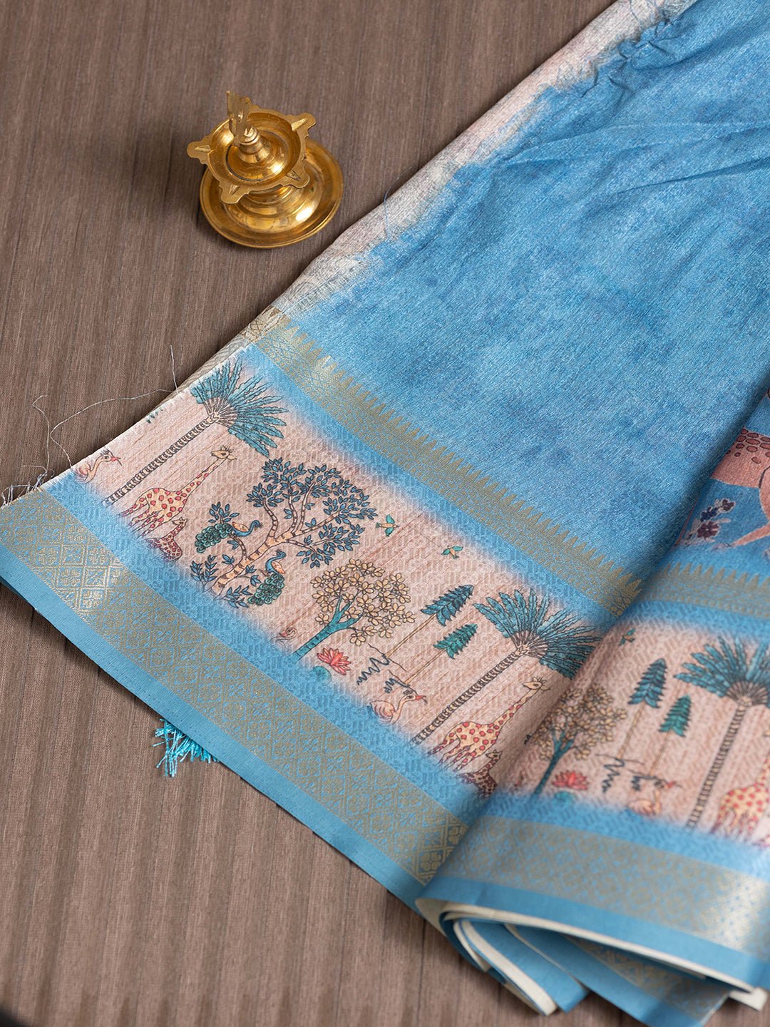 Women Sky blue Semi Tussar Printed Saree SS339